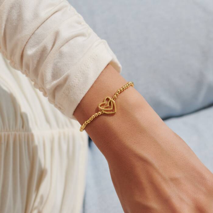 Elevate your jewelry offering with our brand-new Gold A Little Collection. This A Little 'Happy Birthday' Bracelet features a gold stretch-bead design and a pretty double heart charm. As always, this piece is beautifully presented on a stylized card which has been stamped with a heartfelt poem, ready to create an unforgettable gifting moment.