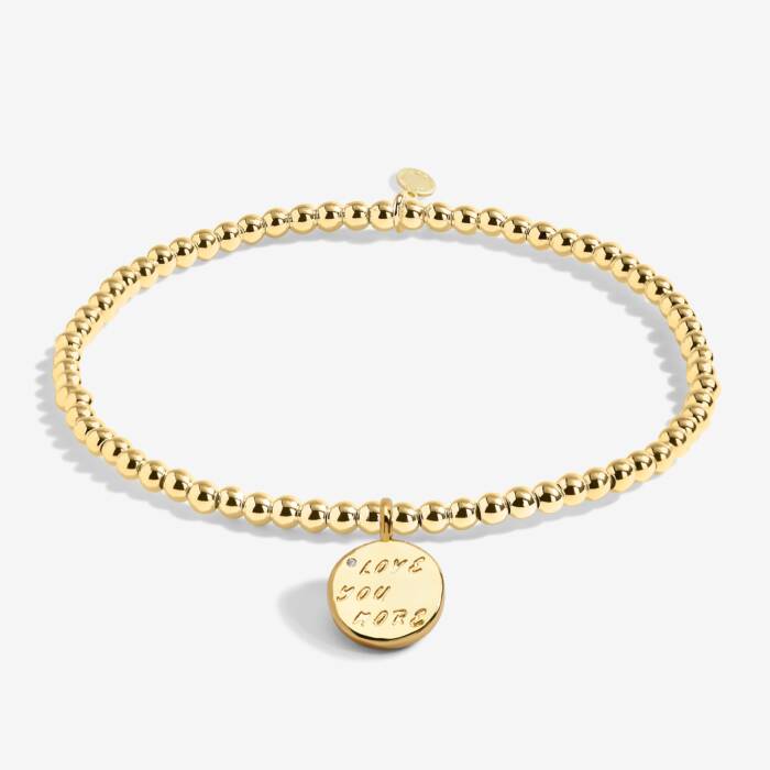 Elevate your jewelry offering with our brand-new Gold A Little Collection. This A Little 'Love You More' Bracelet features a gold stretch-bead design with a precious coin charm that shimmers with every movement. As always, this piece is beautifully presented on a stylized card which has been stamped with a heartfelt poem, ready to create an unforgettable gifting moment.