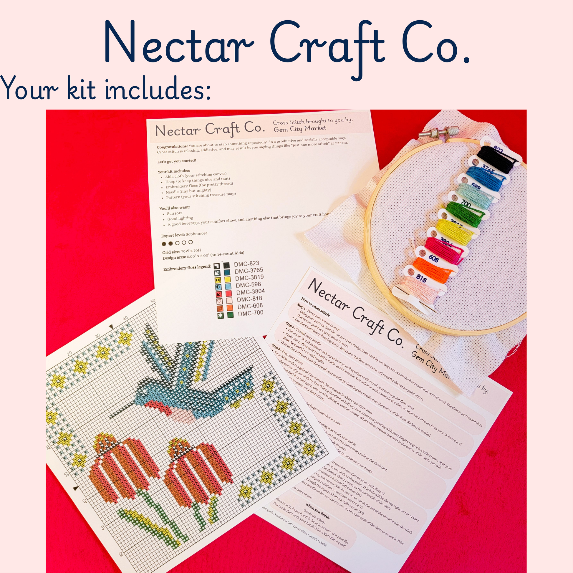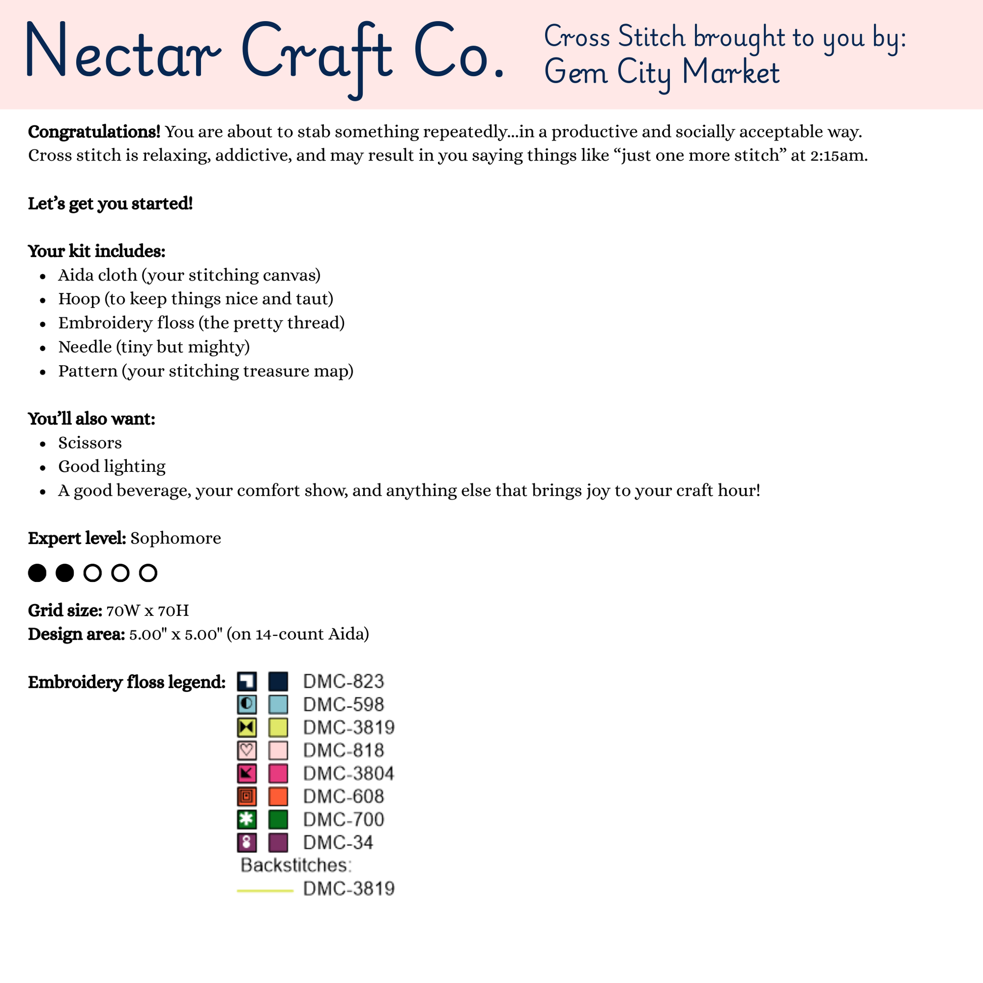 - Instructions (to help if you're a beginning stitcher)