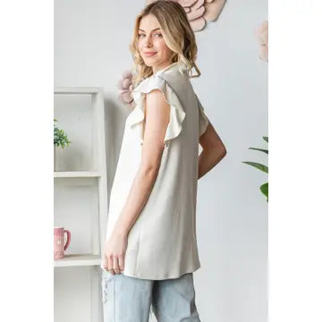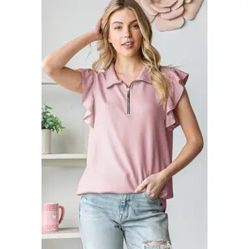 "48%POLY 45% MODAL RAYON 7% SPANDEX SHORT BUTTERFLY SLEEVE ZIPPER UP NECK SOLID MODAL SCUBA TOP